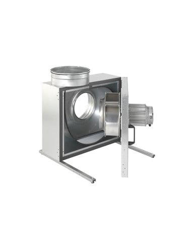 Mycket effektiv EC-motor utanför luftflödet från premiumtillverkare. Styrning via potentiometer. Upp till 120 °C medietemperatur vid kontinuerlig drift . Dubbelväggigt, ljudisolerat hölje (50 mm stenull – obrännbart enligt DIN 4102). Fläkthjul och motor är fast monterade i den uppfällbara väggen. Inspektionslucka förenklar underhåll och rengöring. Leveransomfattning inkluderar sug- och tryckanslutningar med dubbelläppstätning samt monteringskonsoler med vibrationsdämpare av gummi