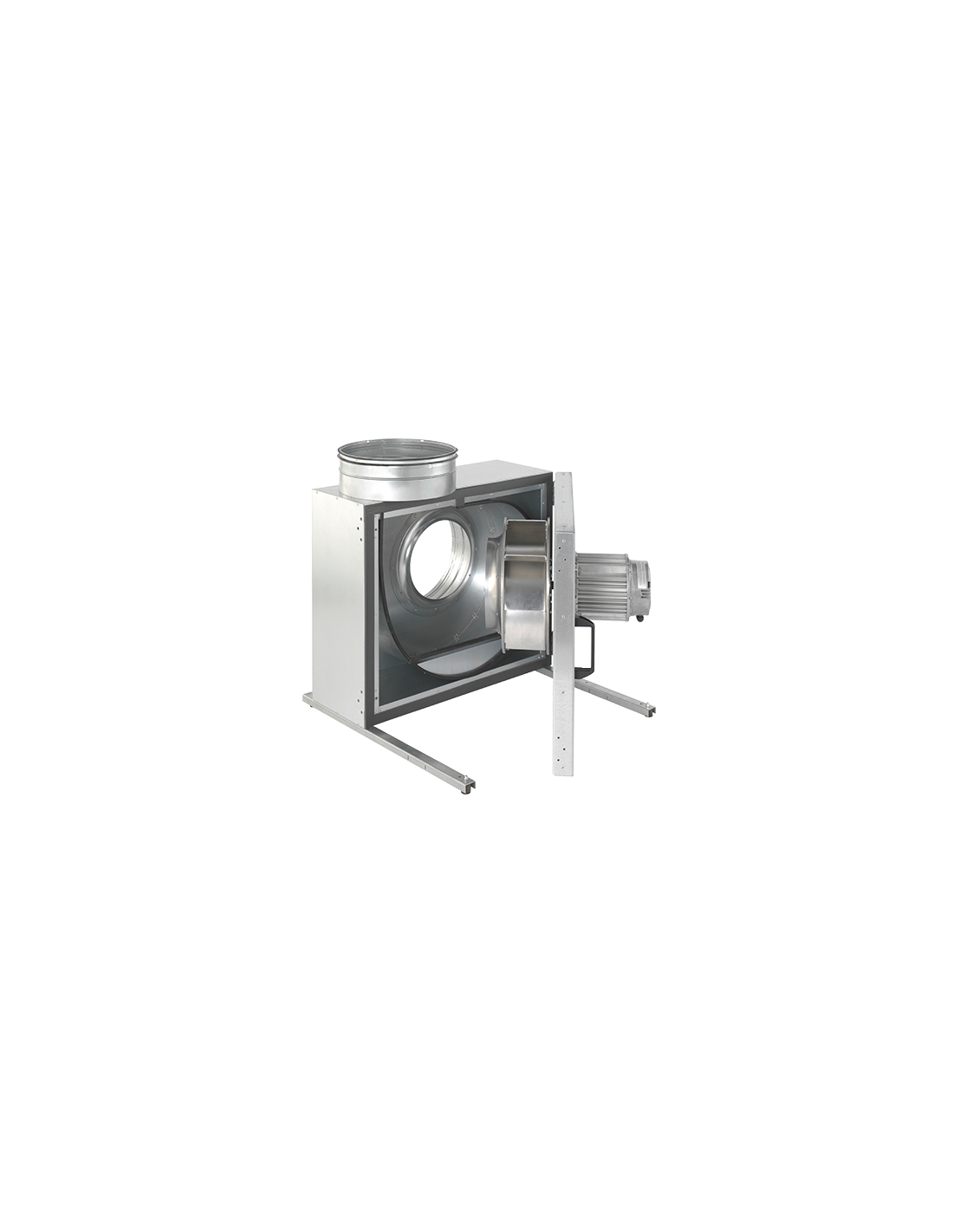 GB 355-2P HT / 400V brandgasfläkt – högkapacitetsfläkt för kontinuerlig drift vid fluida temperaturer upp till 200 °C, med bakåtböjda skovlar och volymflöde upp till ca 5 900 m³/h. Utrustad med högeffektivitetsmotor (endast styrbar via FI) samt inbyggda termokontakter för motorskydd. CE-certifierad enligt EN 12101-3:2002-06 (TÜV Süd) för brandgaser 400 °C/120 min (F400). Utförande & fördelar. Dubbelväggigt, ljuddämpat hölje (50 mm stenull, obrännbart enligt DIN 4102). Impeller med bakåtböjda skovlar, motor och fläkthjul fast monterade i svängbar vägg. Inspektionslucka för enkel service och rengöring. Levereras komplett med sug- och tryckmunstycken, dubbelläppstätning samt monteringsfästen med gummivibrationsdämpare