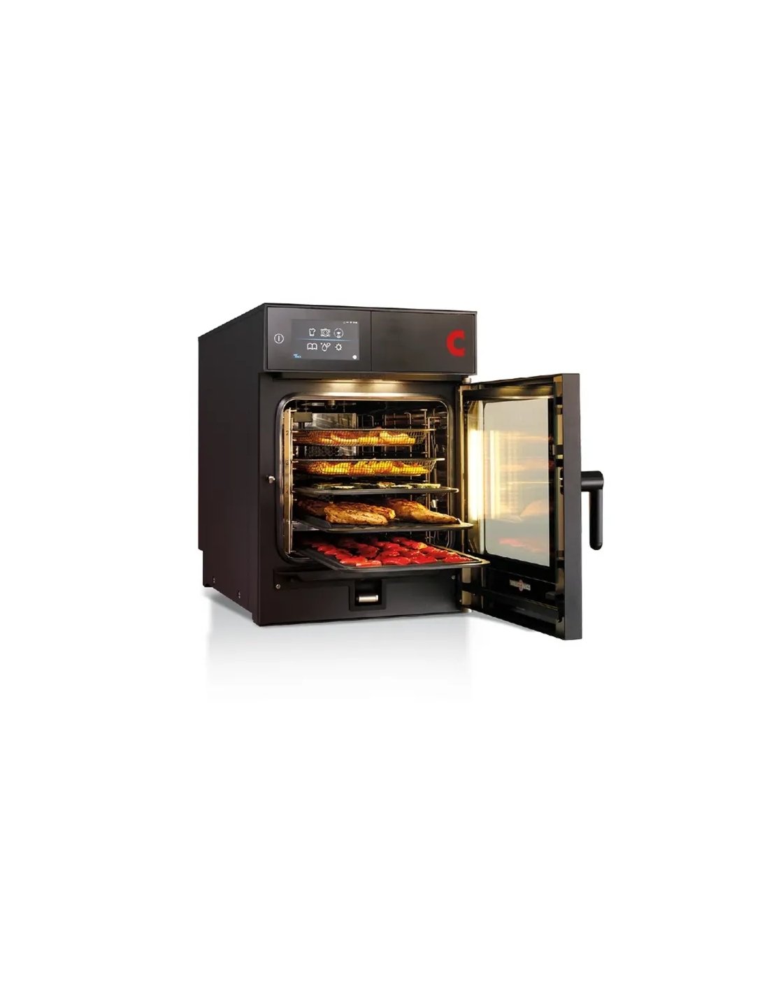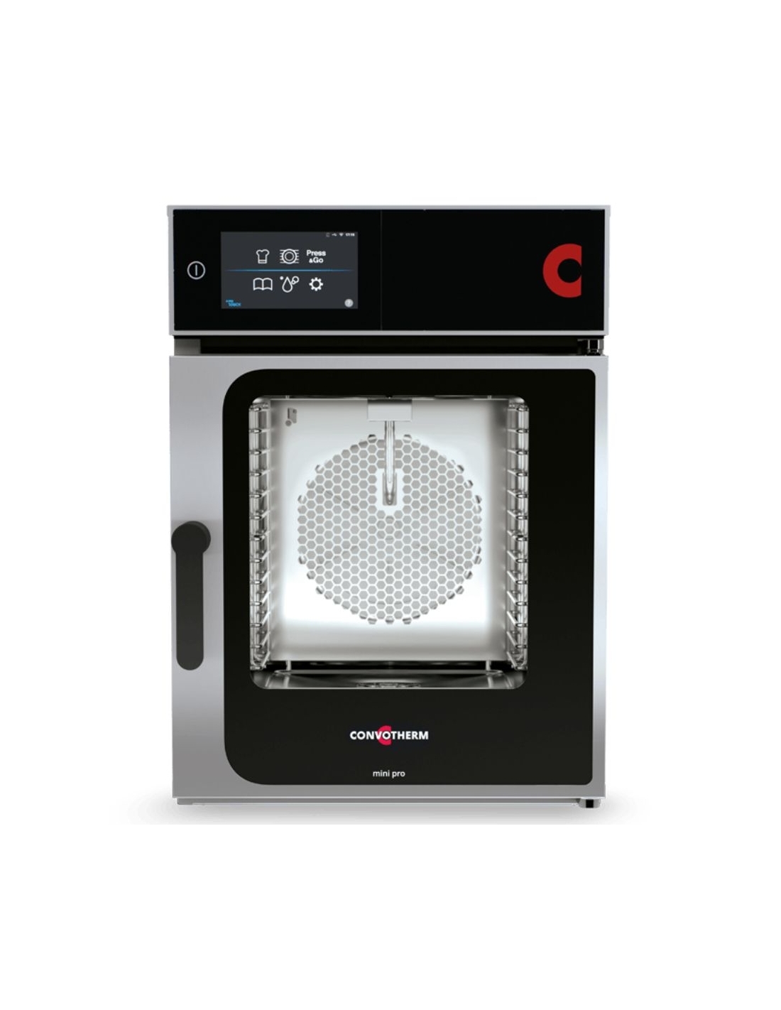 Convotherm Mini Pro svart 6.10- 6x1/1GN- 400V 50/60Hz 3-fas- AI-driven optisk matlagning med ConvoSense, helautomatisk utan manuell inmatning. - Mer kraft med samma energi tack vare 200 % snabbare luftflöde och 80 % mer luftcirkulation.