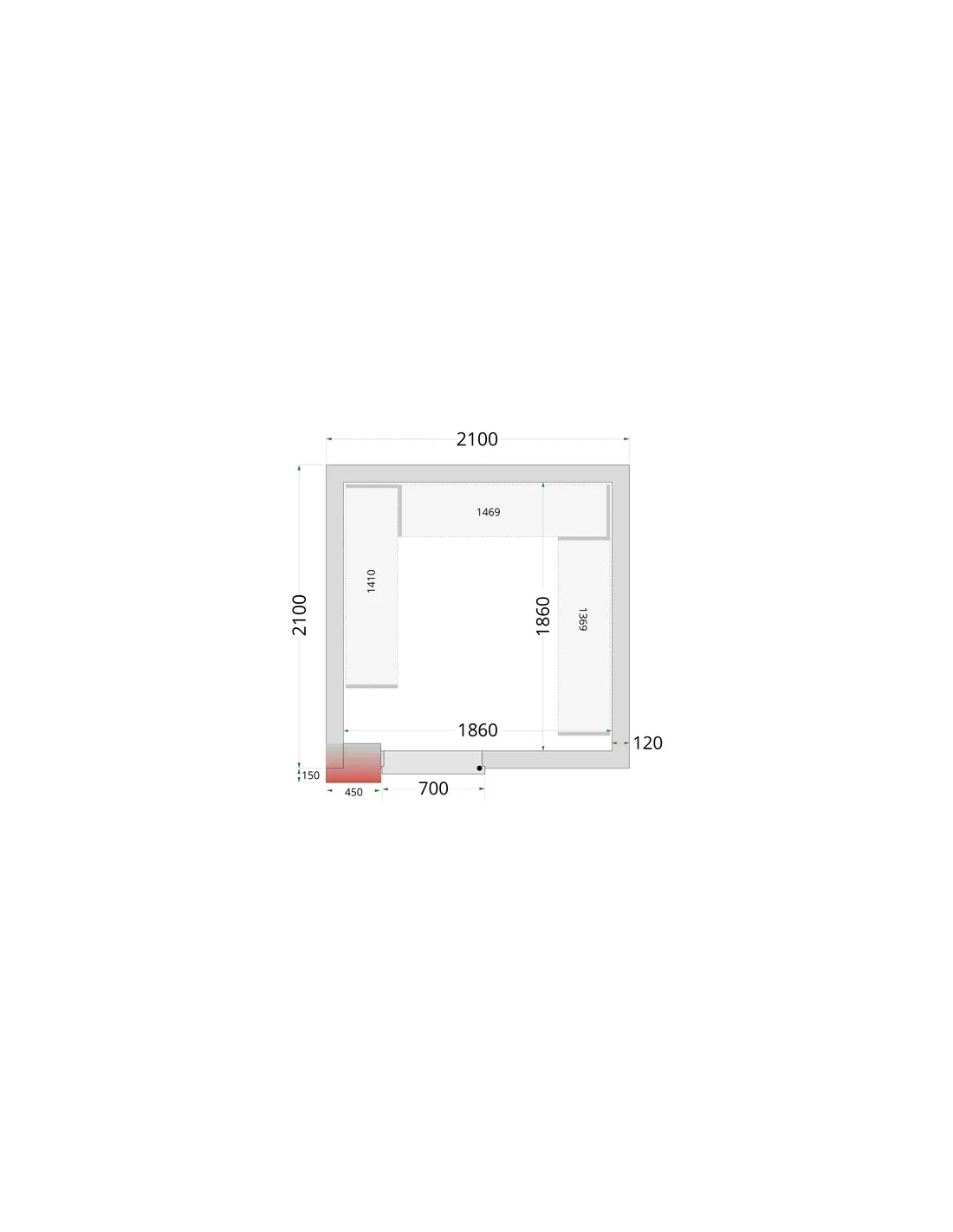Invändiga mått (BxDxH): 1860 x 1860 x 1960 mm