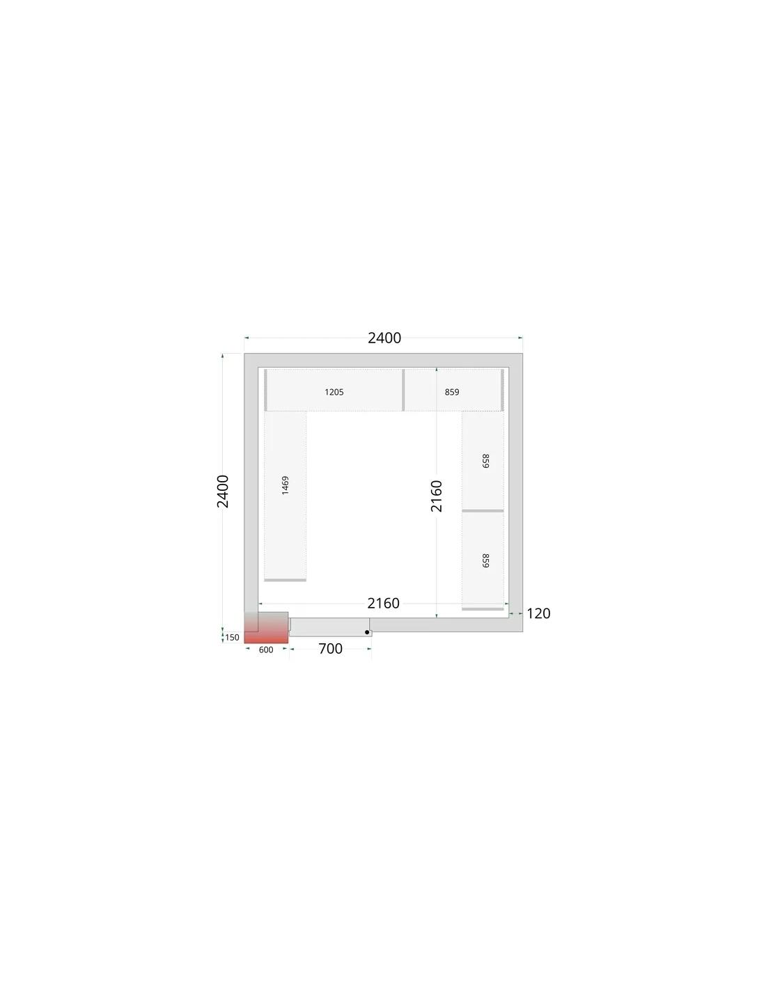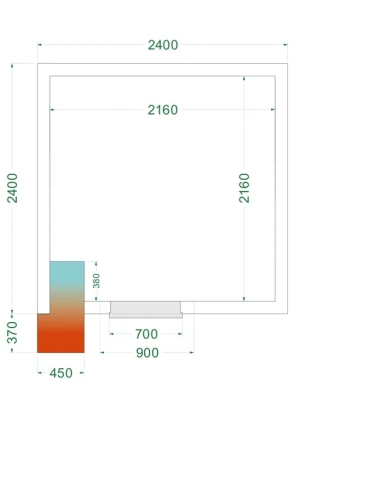 Externa mått (BxDxH): 2400 x 2400 x 2200 mm