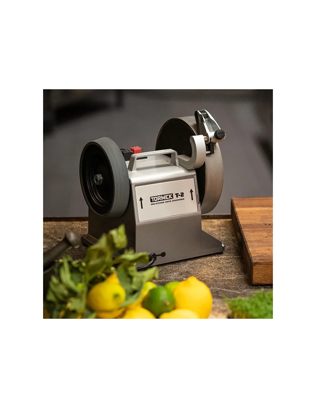 Med Tormek T-2 får du en professionell slipning. Konceptet är en vidareutveckling av diamantbrynet, som i kombination med en patenterad styrning av eggvinkeln ger dig full kontroll.