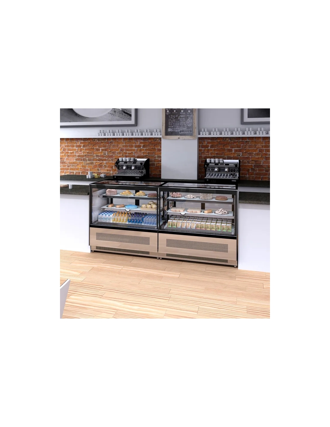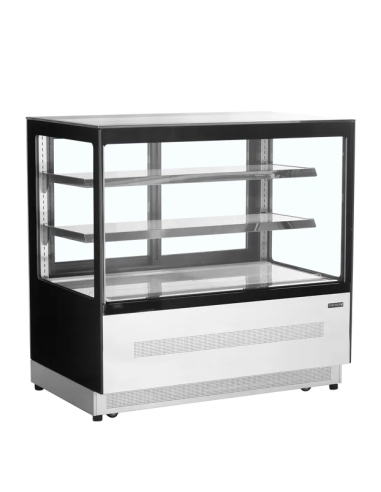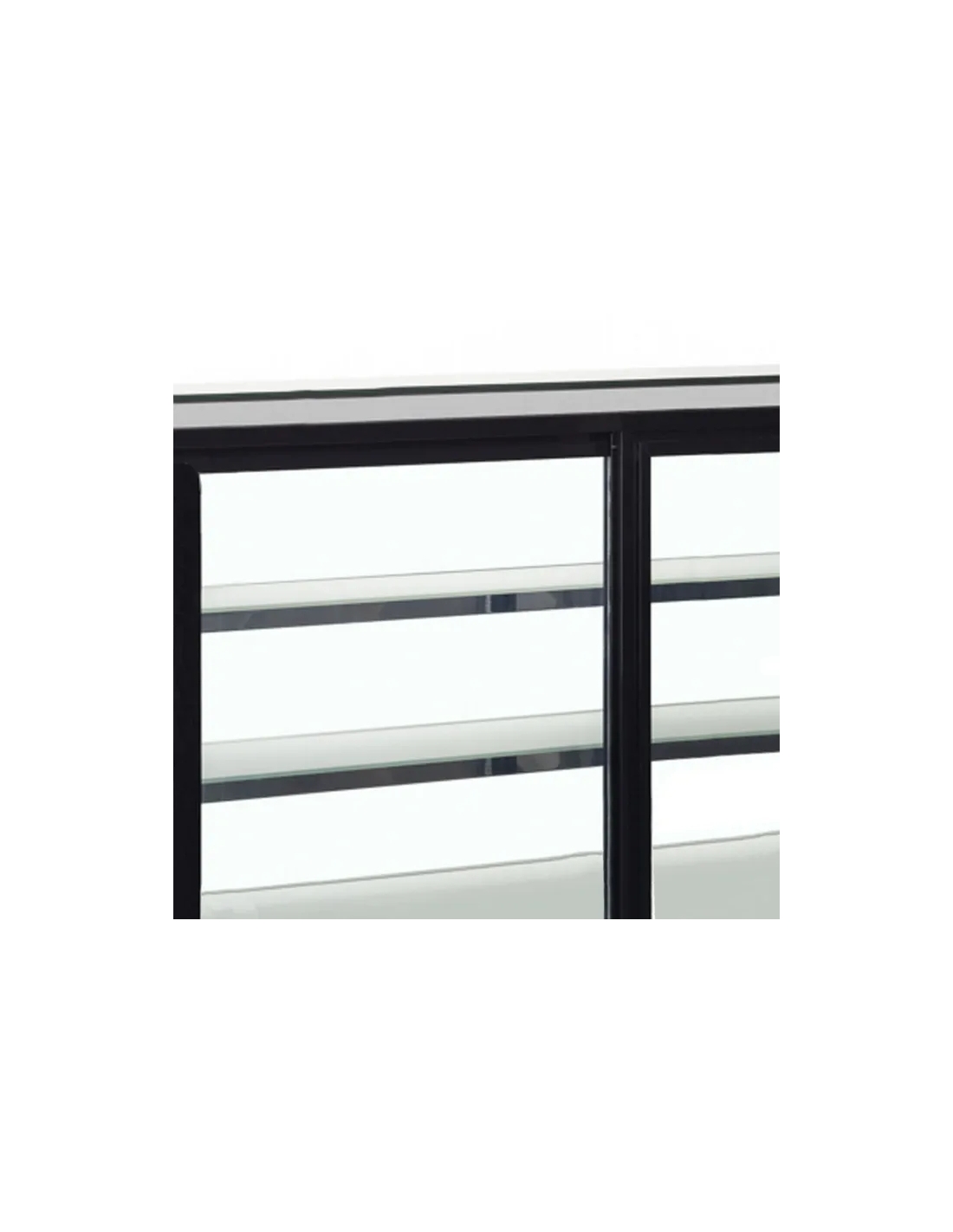 Konditorikyl - LPD903F/BLACK - Extra hyllutrymme -Svart glasram i rostfritt stål och glansig -Dubbelglas - Uppvärmd frontglas- LED-lampa under varje hylla - Bakre glasskjutdörr(ar) -Ventilerad kylning -Plan glasovandel