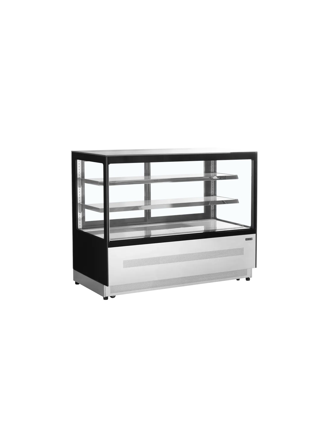 Konditorikyl LPD1503F/BLACK - Extra hyllutrymme - Svart glasram i rostfritt stål och glansig -Dubbelglas - Uppvärmd frontglas - LED-lampa under varje hylla - Bakre glasskjutdörr(ar) -Ventilerad kylning -Plan glasovandel