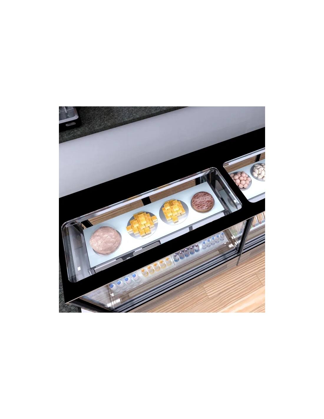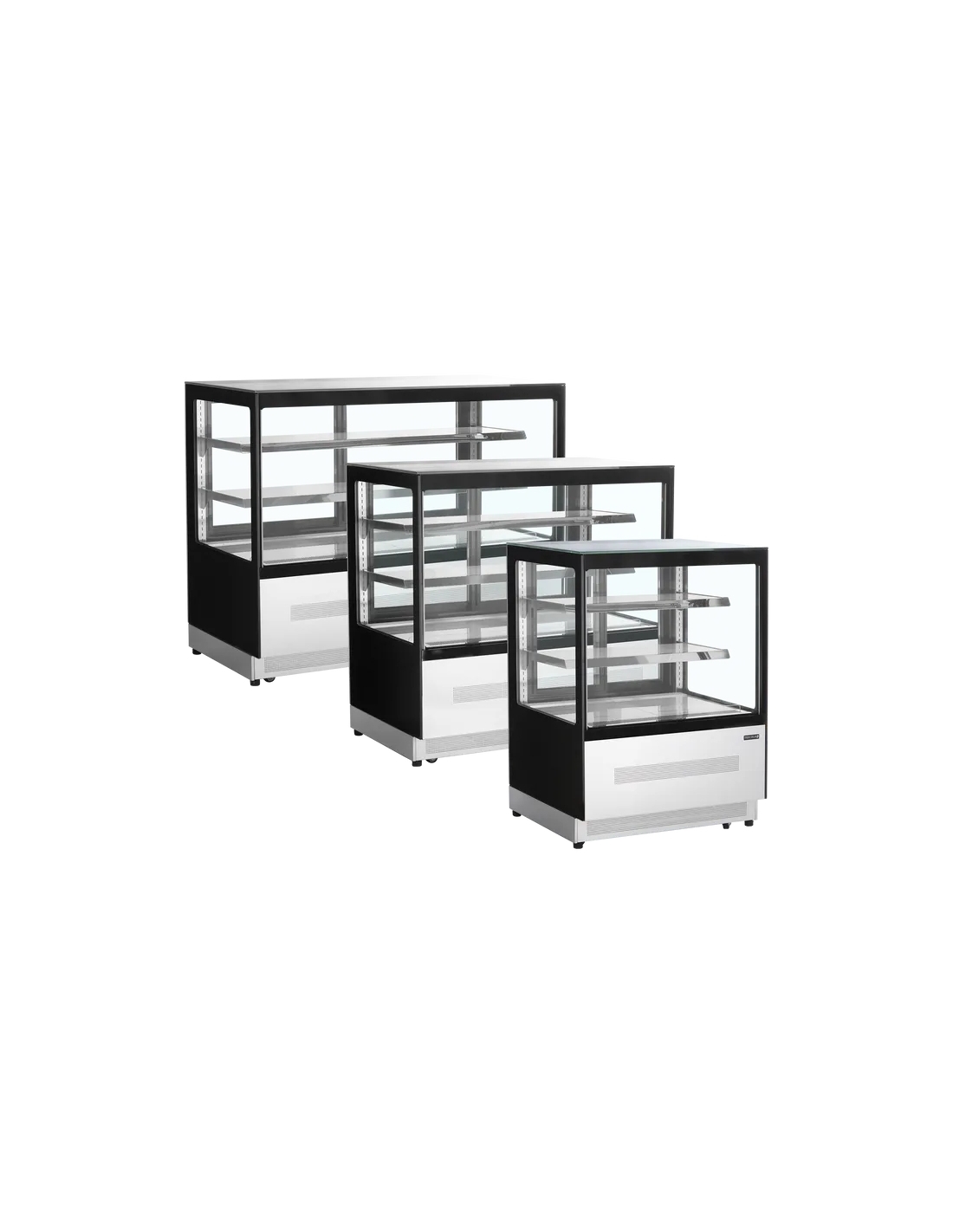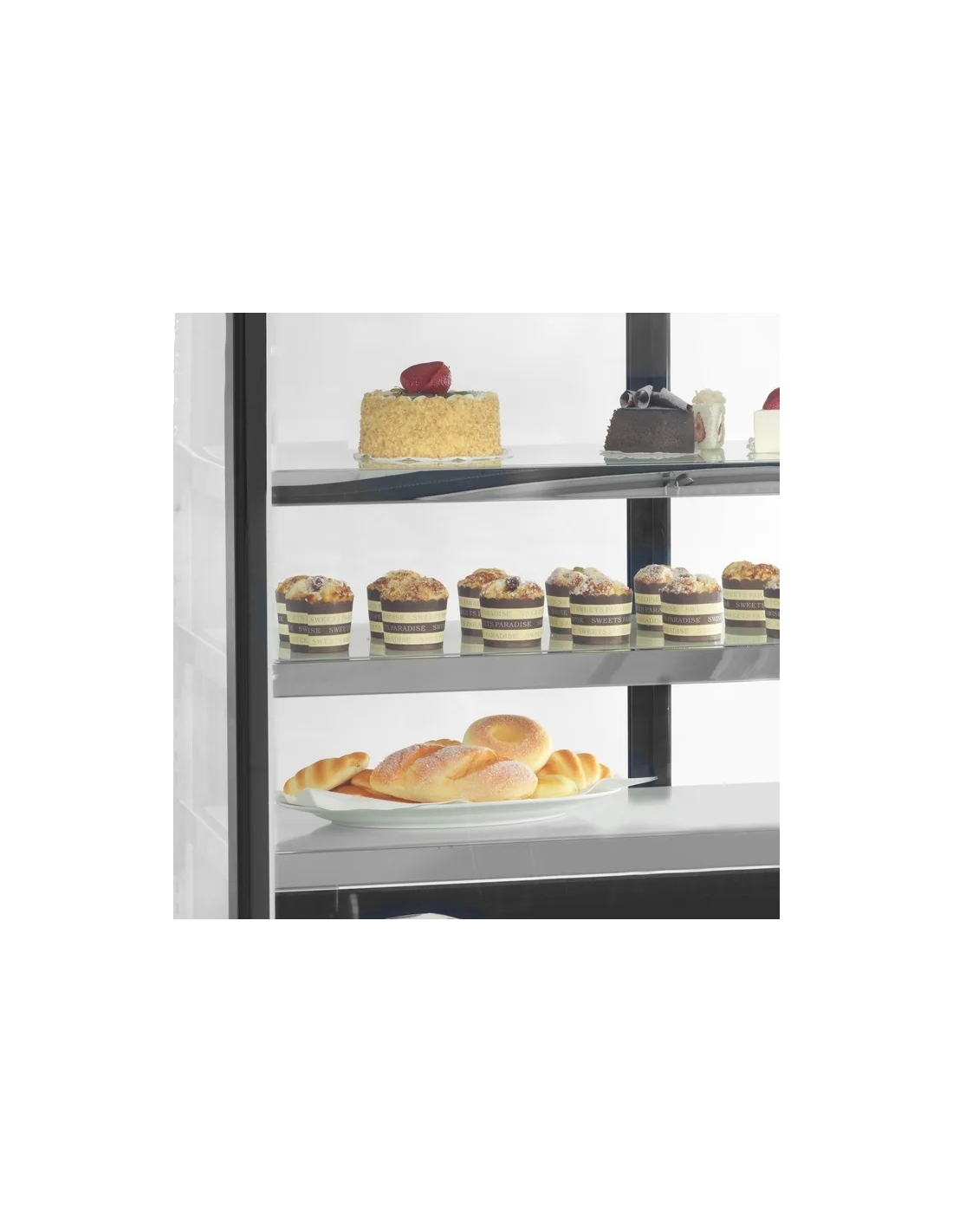Konditorikyl - LPD903F/BLACK - Extra hyllutrymme -Svart glasram i rostfritt stål och glansig -Dubbelglas - Uppvärmd frontglas- LED-lampa under varje hylla - Bakre glasskjutdörr(ar) -Ventilerad kylning -Plan glasovandel