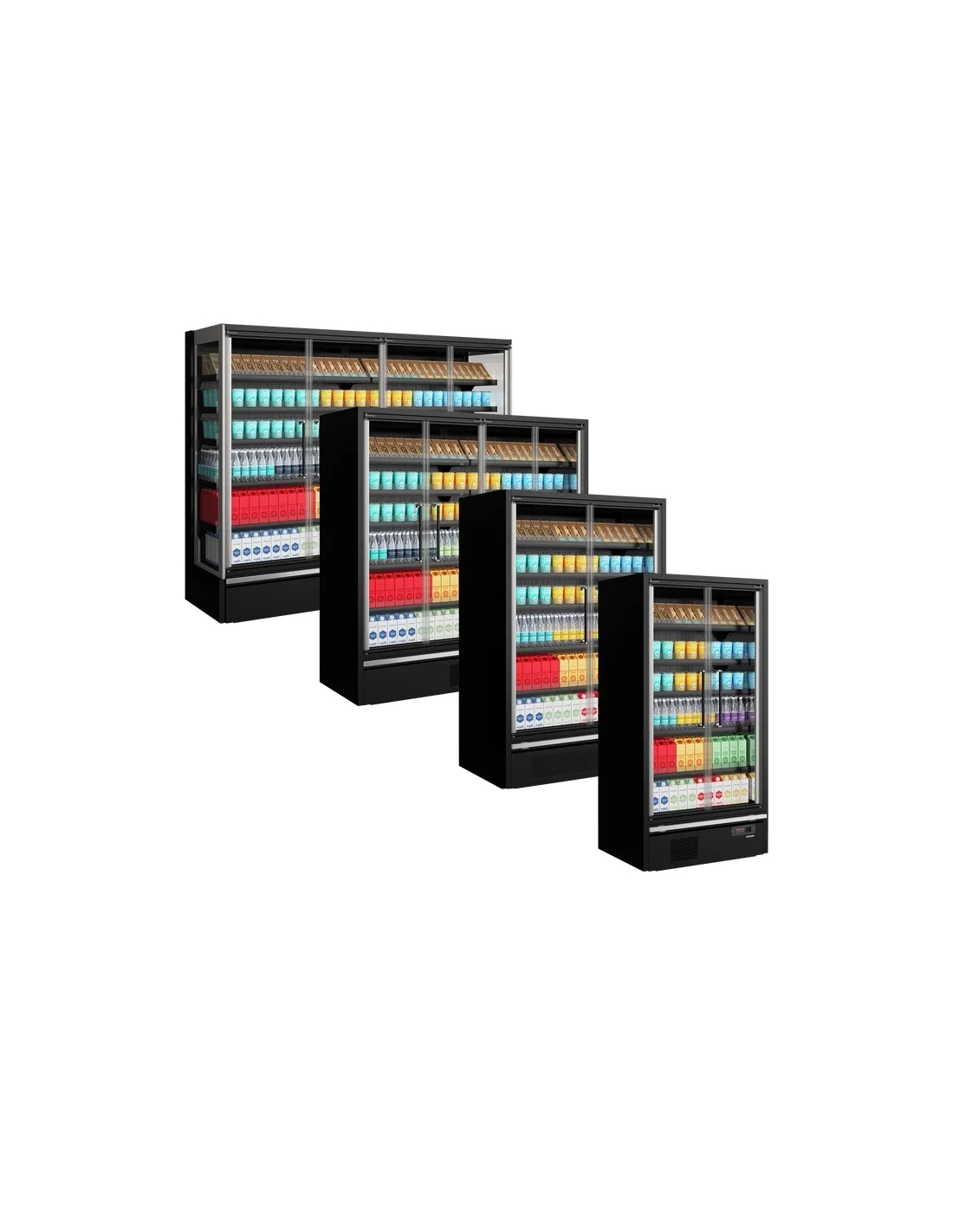 Galaxy+ GP20FGD Black - Multideck-kyl 1955mm -EU-energiklass B - Flerkoppling möjlig – skapa en oavbruten kontinuerlig linje- Glasdörrar utan ram för utmärkt produktexponering - Ställbara hyllor med lutfunktion - Kraftiga hyllor med förstärkningsstång - Skylthållare och frontlist i akryl som standard - Självstängande dörrar - Solida 40 mm ändväggar med...