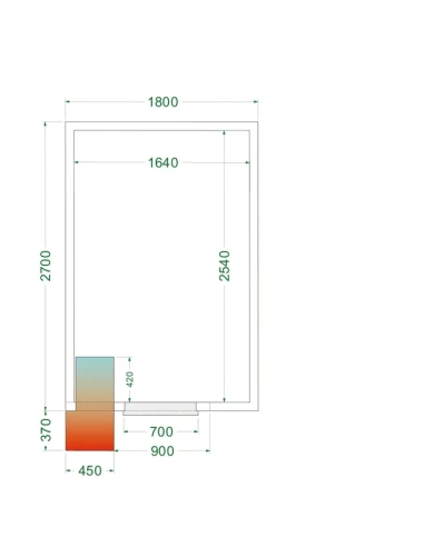 Externa mått (BxDxH): 1800 x 2700 x 2200 mm