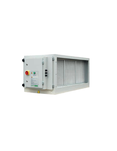 W-ESP är en elektrostatisk filtermodul (ESP) för effektiv avskiljning av fett, oljedimma, rök och ultrafina partiklar ur ventilationsluft. Enheten installeras direkt i kanalsystemet och är optimerad för storkök, industriella processer och andra applikationer med höga krav på luftkvalitet och brandsäkerhet.