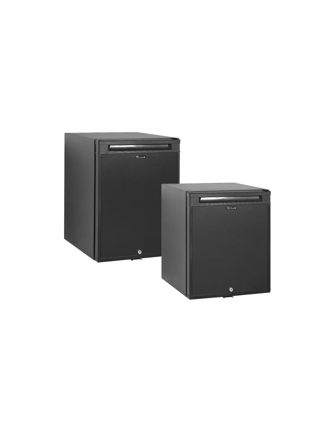 Minibar TM33 - Absorptionsdrivet kylsystem - Plan integrerad förångare - Tystgående - Låg energiförbrukning - Vändbar massiv dörr - Justerbara hyllor, även i dörren - Invändig LED-lampa -Lås