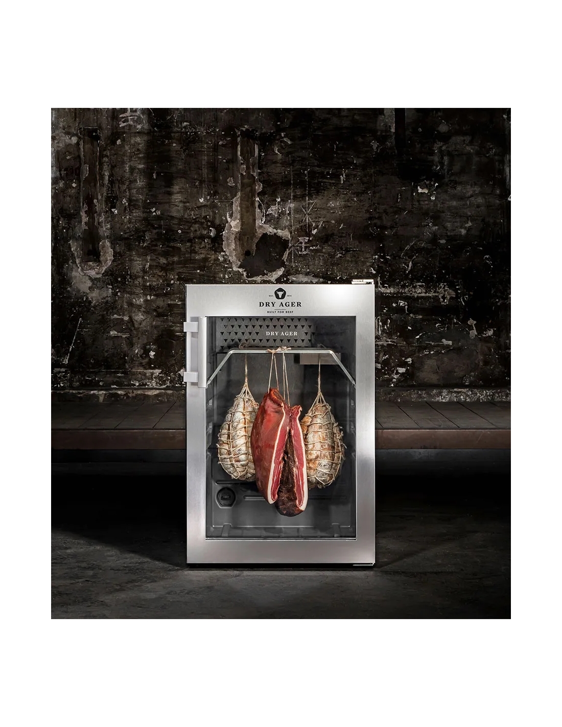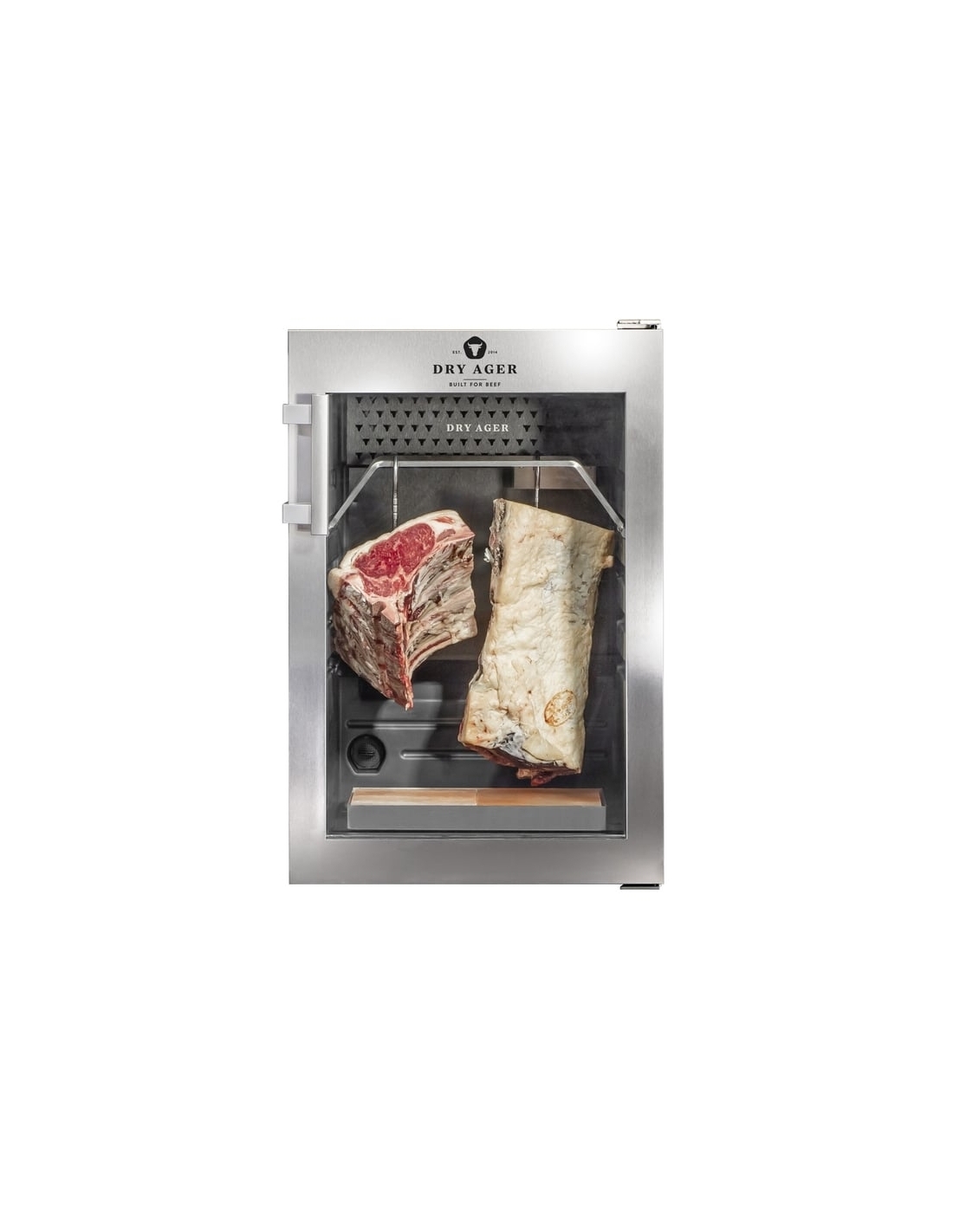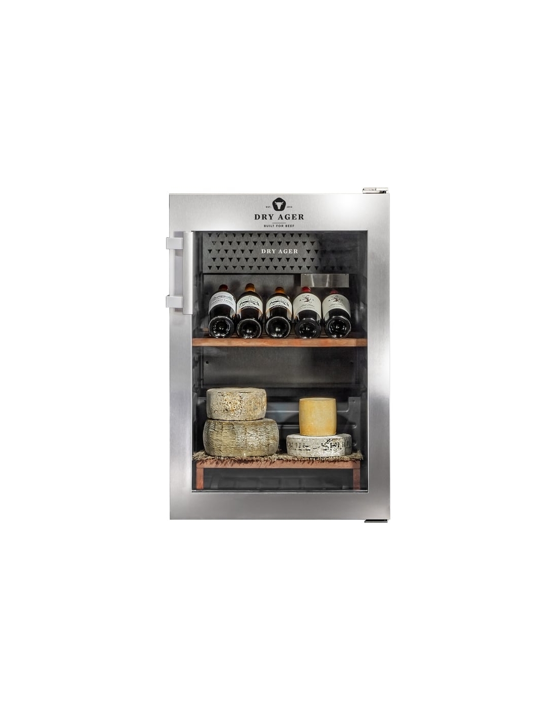 Hängmörningsskåp rostfritt/svart 155/134L DX500 Premium S Dry Ager- Helt i svart pulverlackering ELLER hölje och dörr i rostfritt stål ELLER specialfärgad- Låsbar dörr- Innerbehållare, antibakteriell polystyren - Innervägg, DX-LED Salt Wall System. Med 10 olika ljusfärger- Isolerande glasdörr, UV-skydd, tonad (metalliserad)