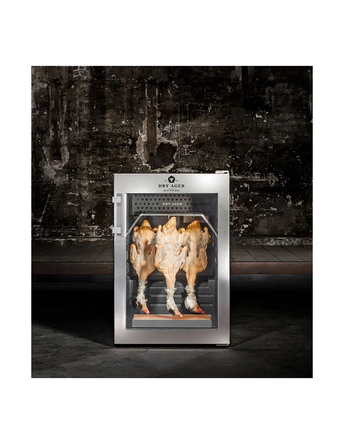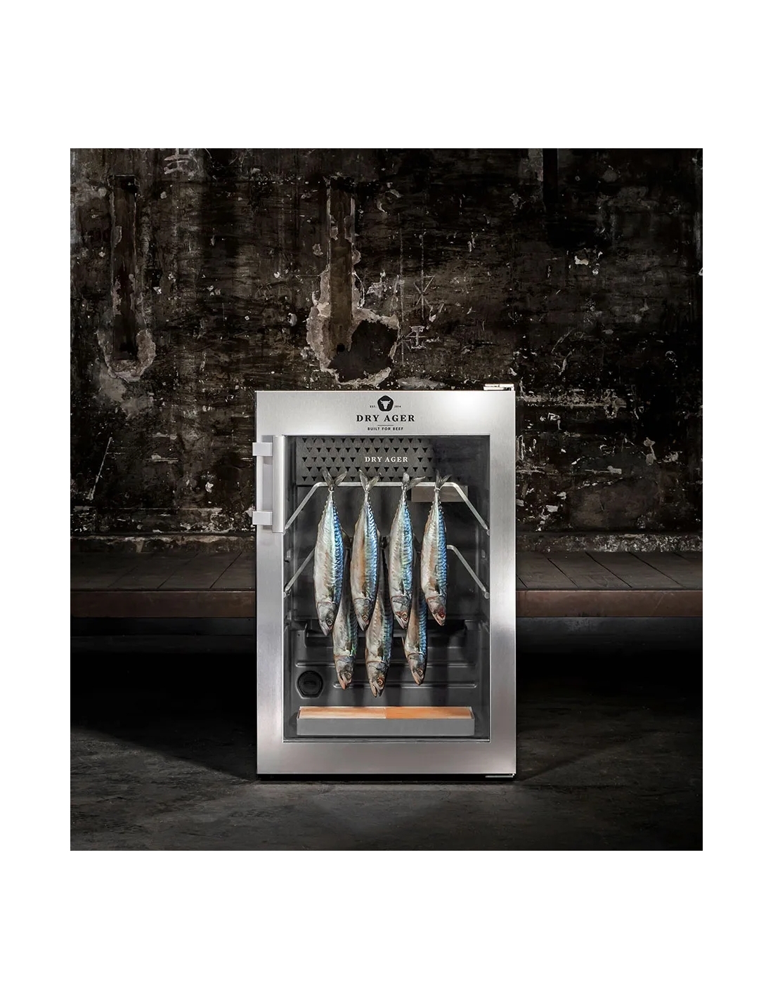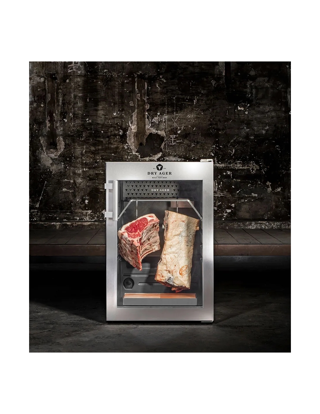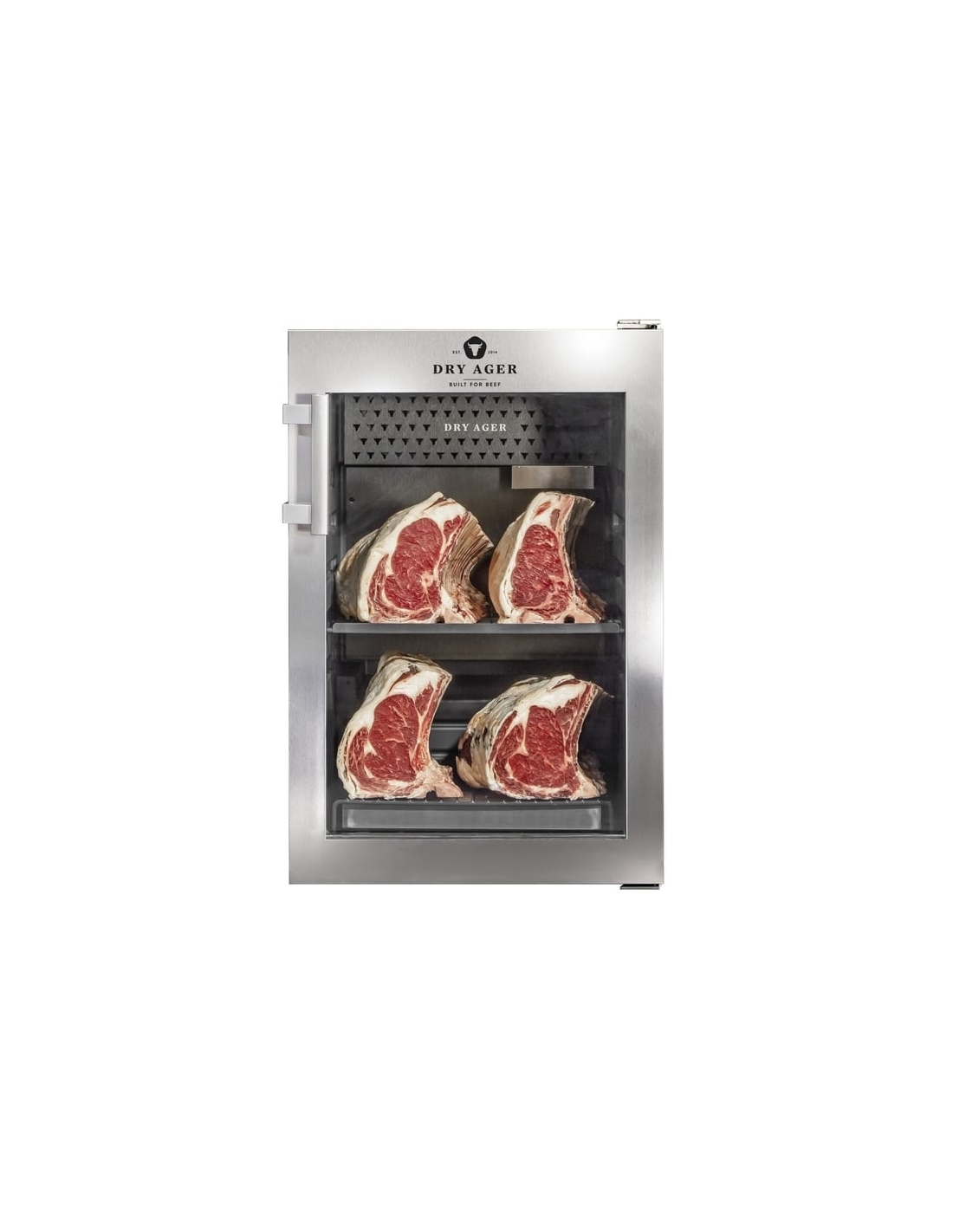 Hängmörningsskåp rostfritt/svart 155/134L DX500 Premium S Dry Ager- Helt i svart pulverlackering ELLER hölje och dörr i rostfritt stål ELLER specialfärgad- Låsbar dörr- Innerbehållare, antibakteriell polystyren - Innervägg, DX-LED Salt Wall System. Med 10 olika ljusfärger- Isolerande glasdörr, UV-skydd, tonad (metalliserad)