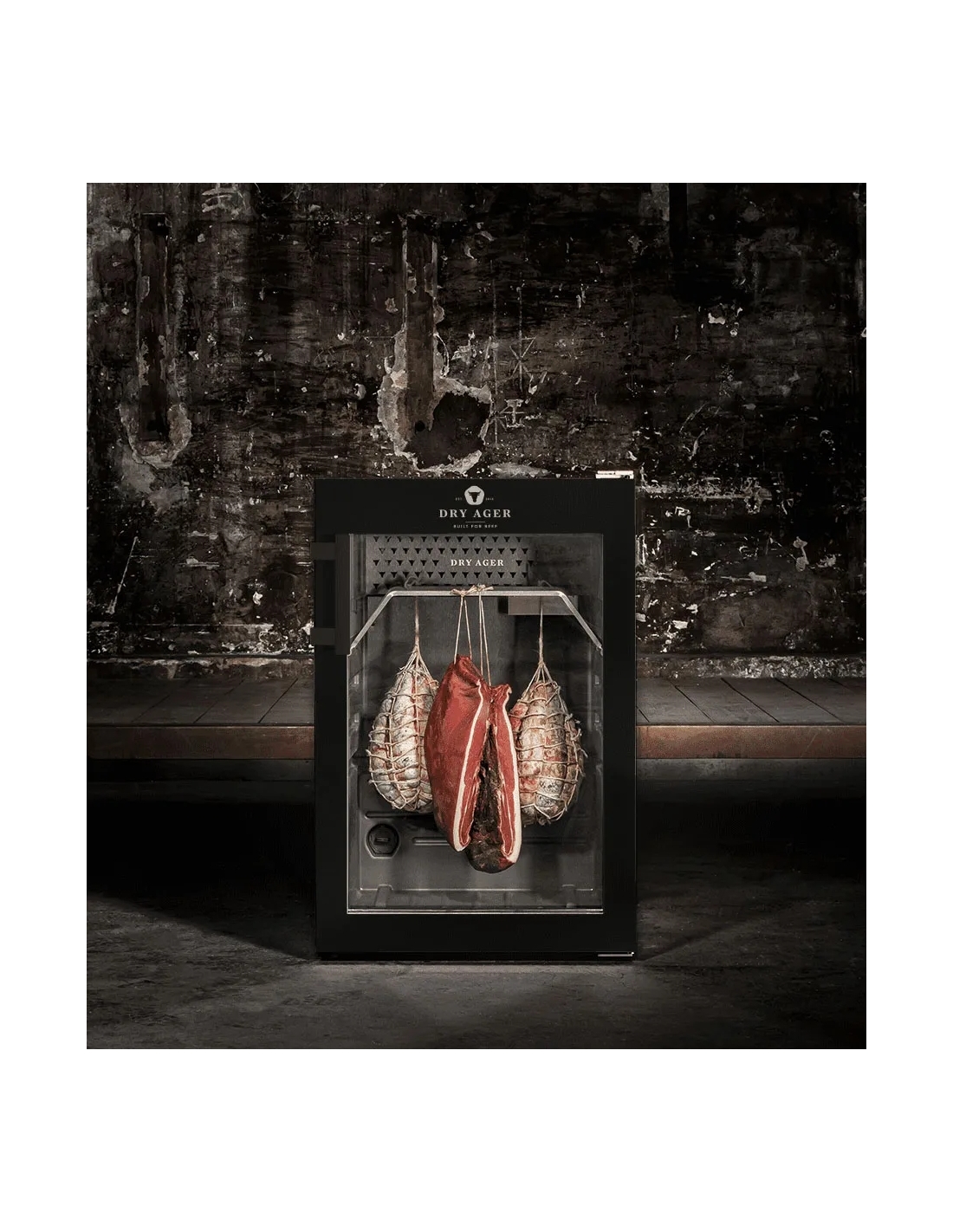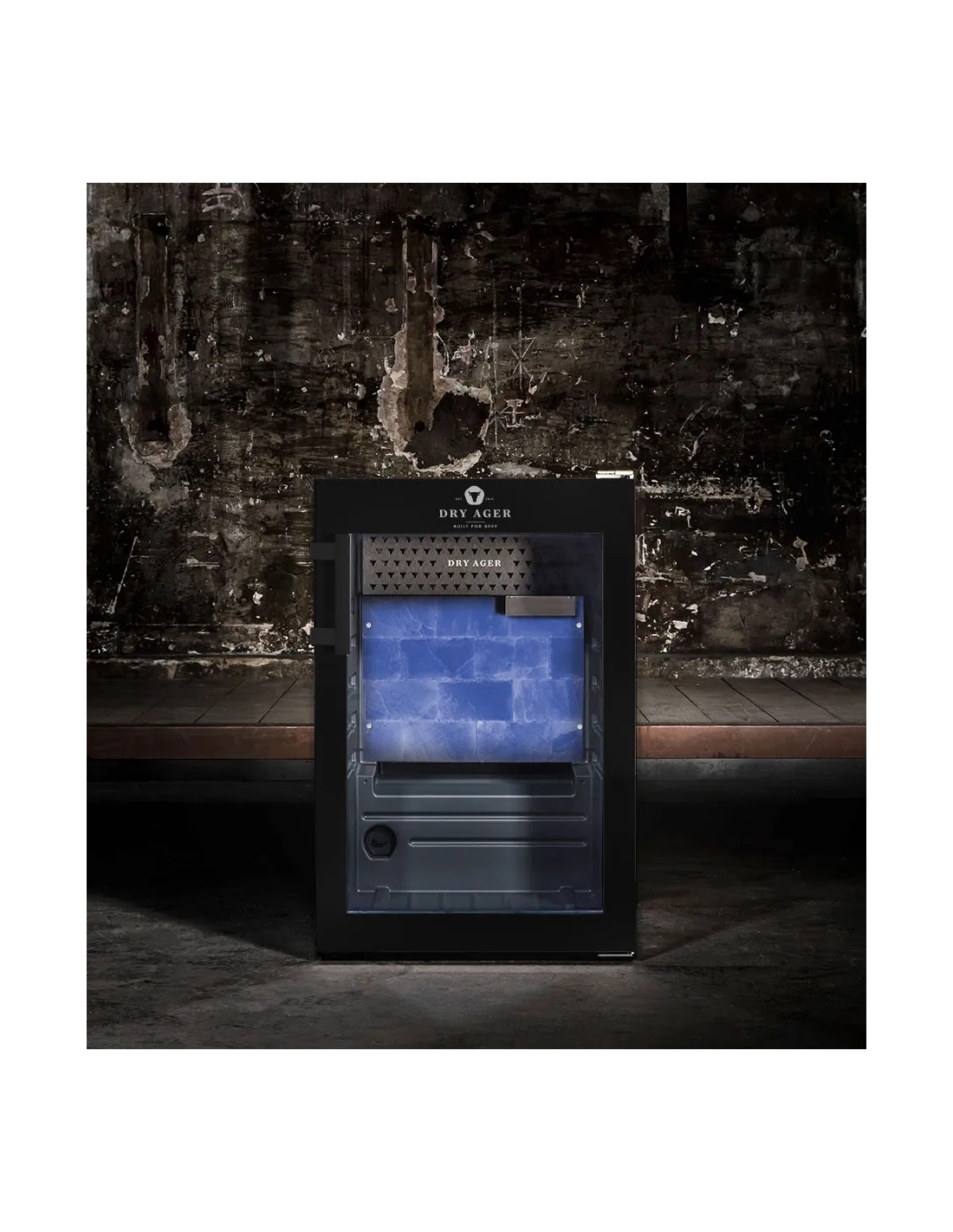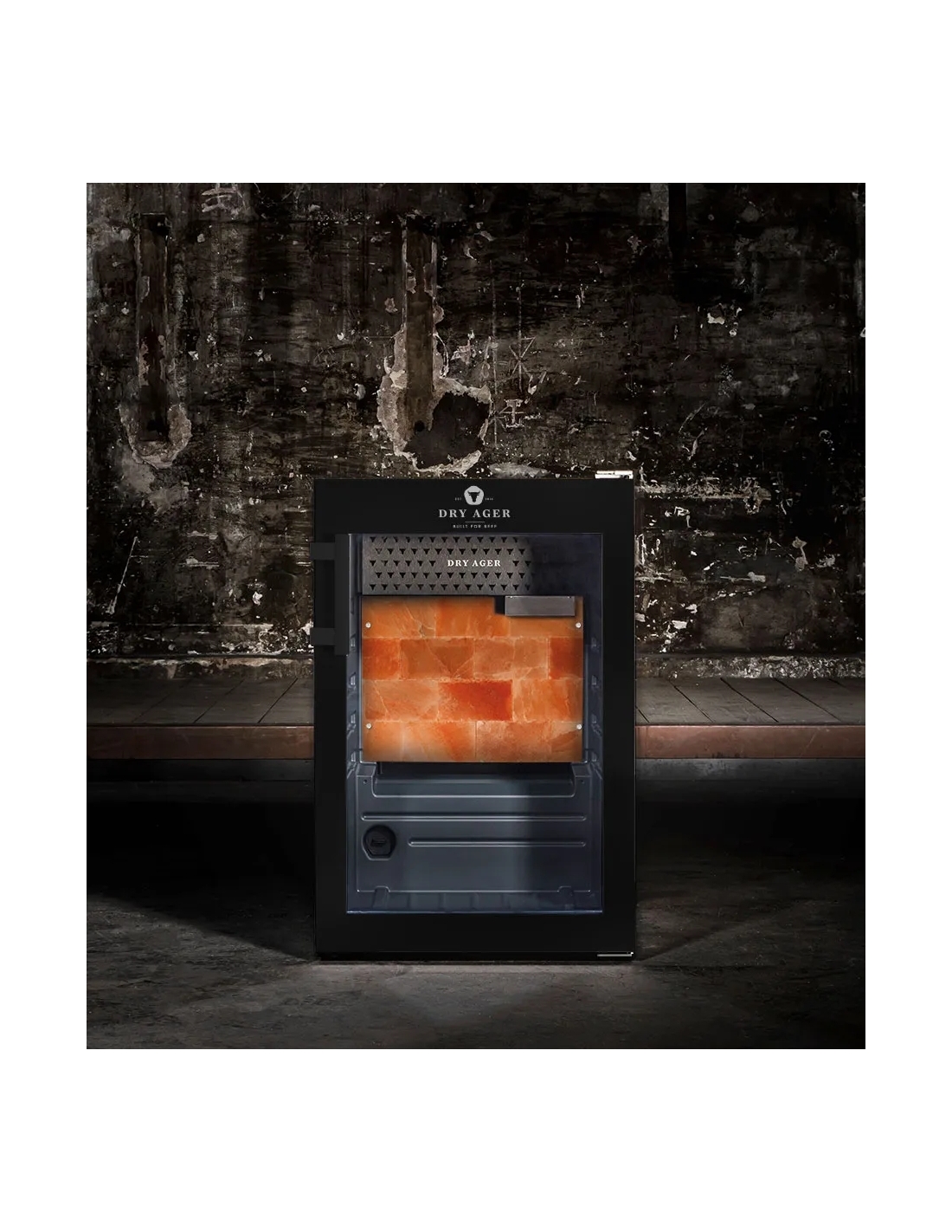 Hängmörningsskåp rostfritt/svart 155/134L DX500 Premium S Dry Ager- Helt i svart pulverlackering ELLER hölje och dörr i rostfritt stål ELLER specialfärgad- Låsbar dörr- Innerbehållare, antibakteriell polystyren - Innervägg, DX-LED Salt Wall System. Med 10 olika ljusfärger- Isolerande glasdörr, UV-skydd, tonad (metalliserad)