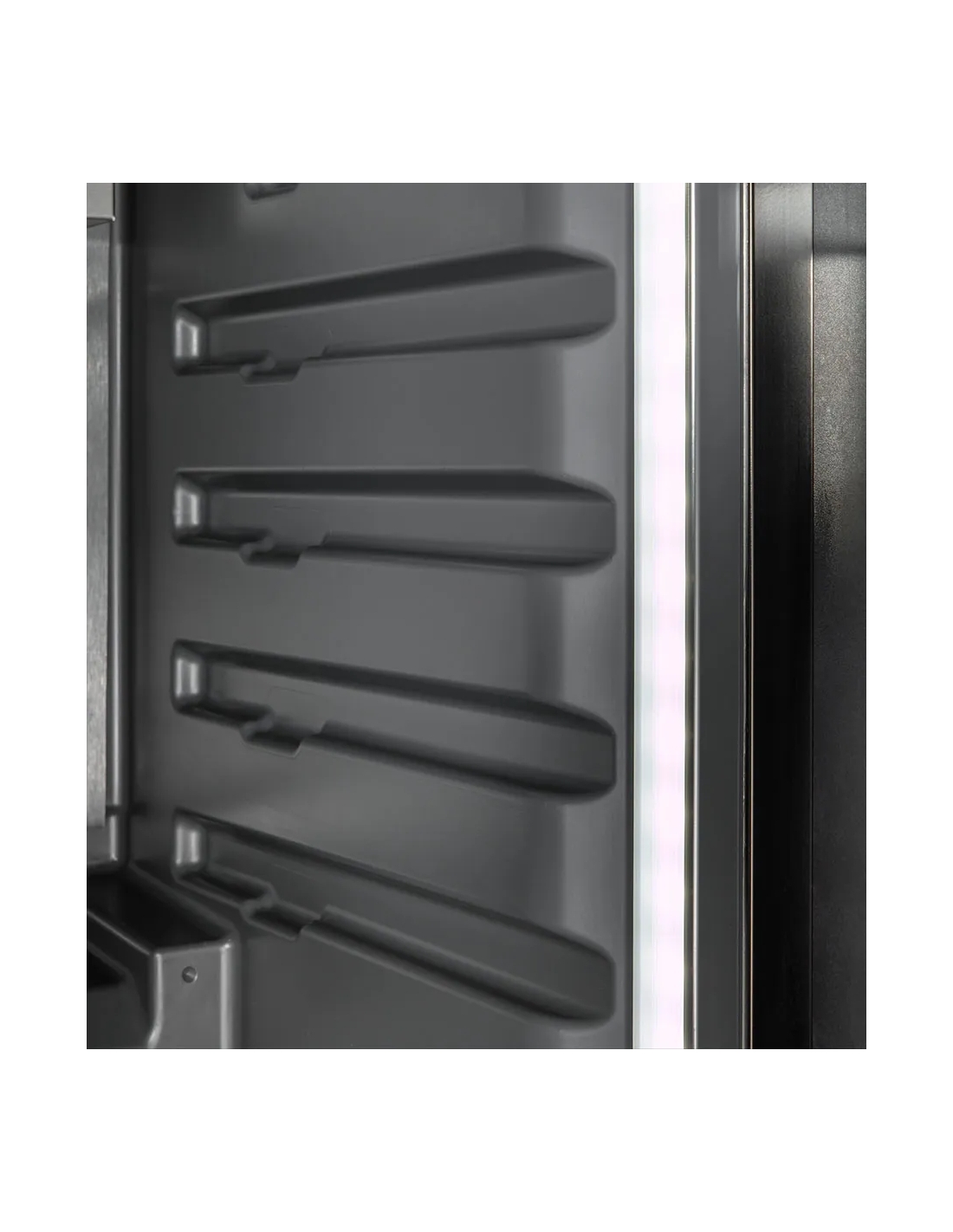 INNERBELYSNING – DX LED Premium-ljusremsor, integrerade i sidopanelerna för bästa möjliga belysning av skåpets innehåll. Ljusspektrumet innehåller inte ultraviolett strålning. Minimal värmeutveckling, ingen punktvis uppvärmning av produkten.