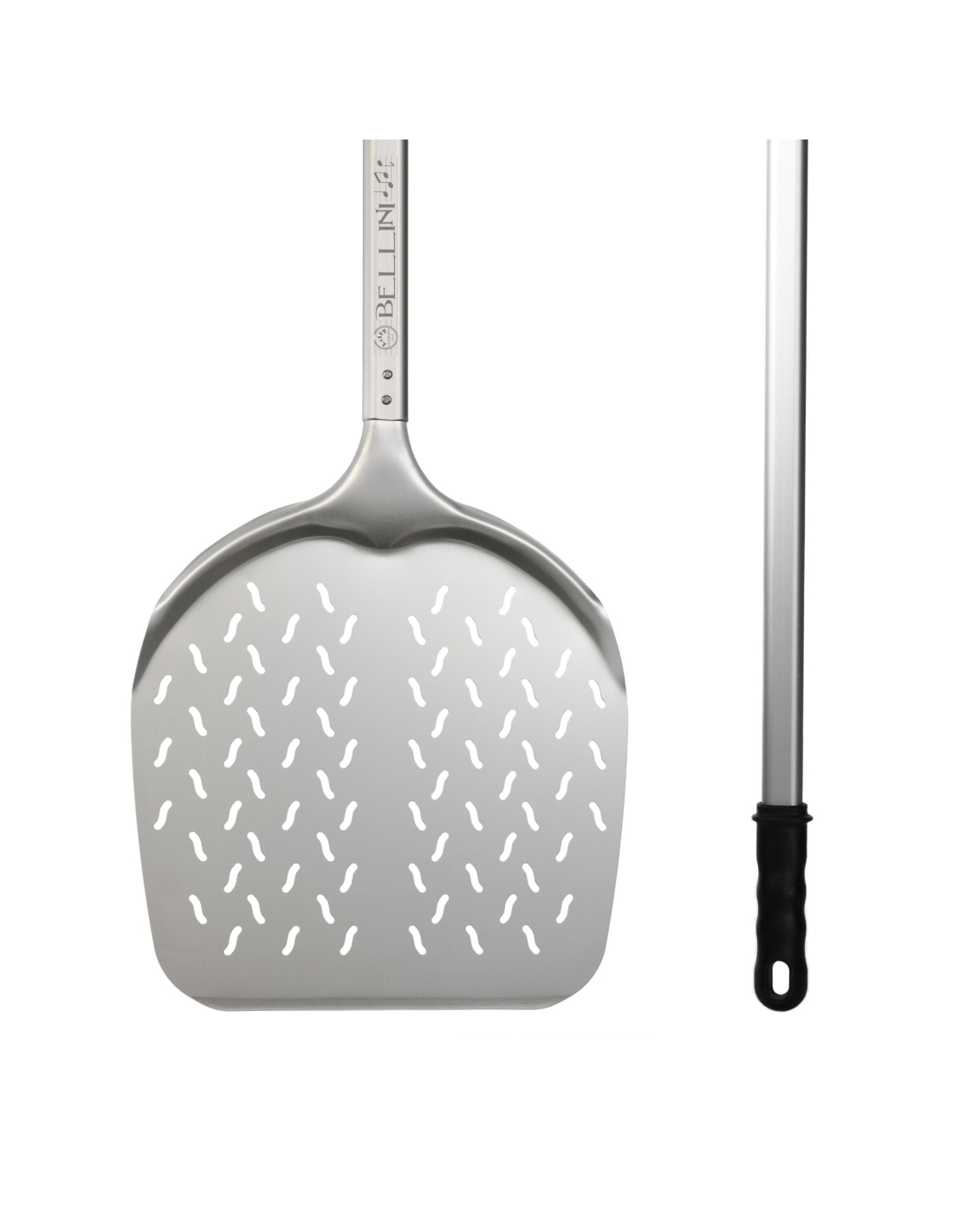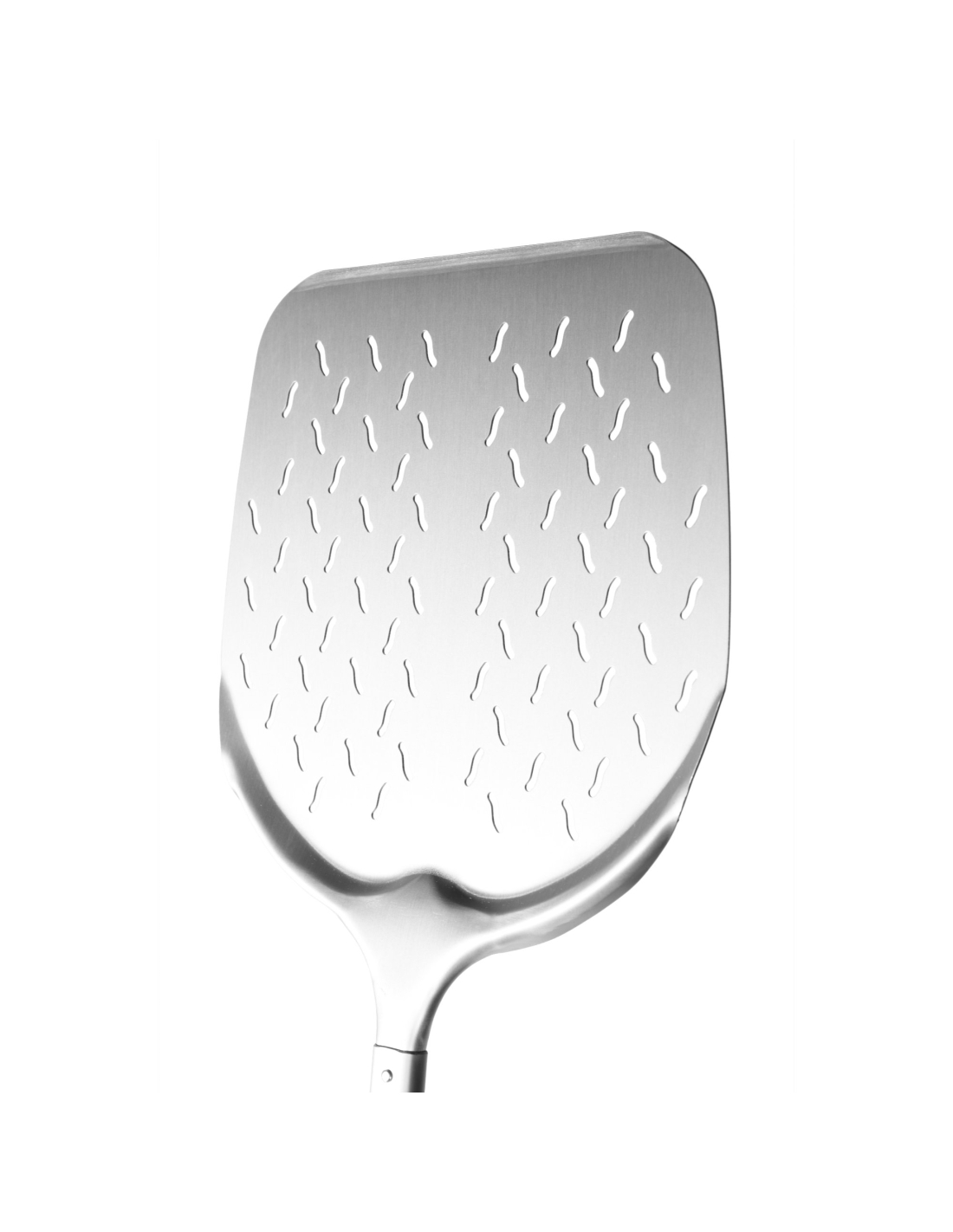 Perforerad och tålig professionell inkastarpizzaspade- Pala Sole Mio är en perforerad pizzaspade av högsta kvalitet, tillverkad av anodiserad aluminiumlegering (2 mm). Den är robust, slitstark och samtidigt lätt att hantera. Passar alla typer av pizzaugnar.