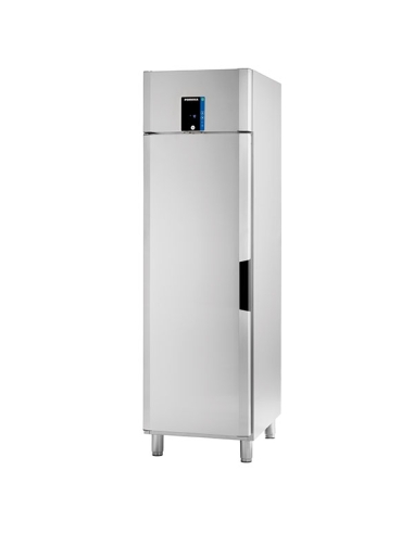 Utvändigt och invändigt helt i rostfritt- Digital visning av temperatur- Helautomatisk elektronisk termostat- Dörr självstängande- Dörr står öppen i 90 grader- Fläktkyld- Hyllskenor är pressade i gavlarna- Försedd med potentialfri kontakt för anslutning till central alarm- Hetgas avfrostning