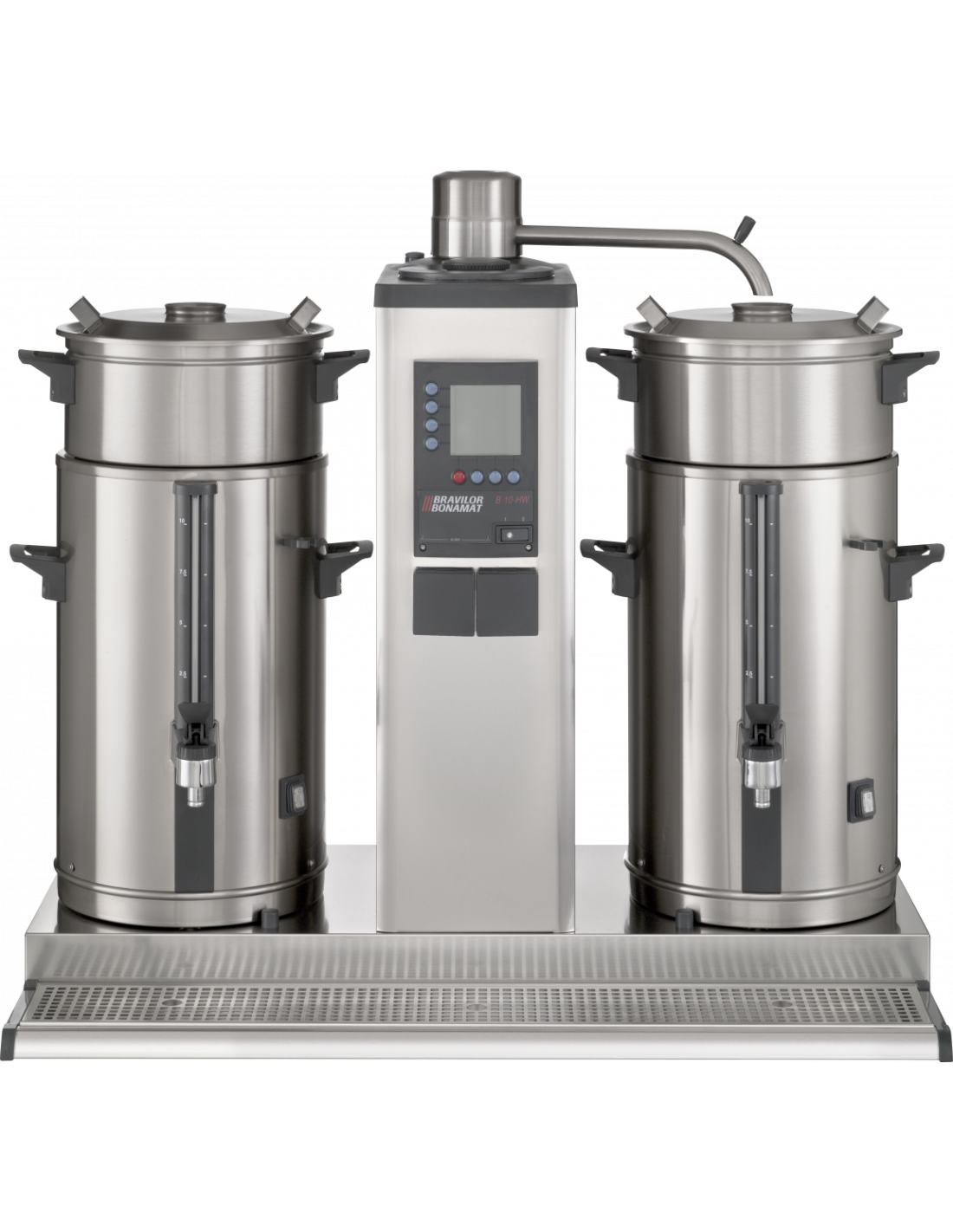 Bryggare för korgfilter - Fast vattenanslutning - Brygger stora mängder kaffe i separata behållare - 1 bryggpelare - 2 behållare på 5 liter - Digital display